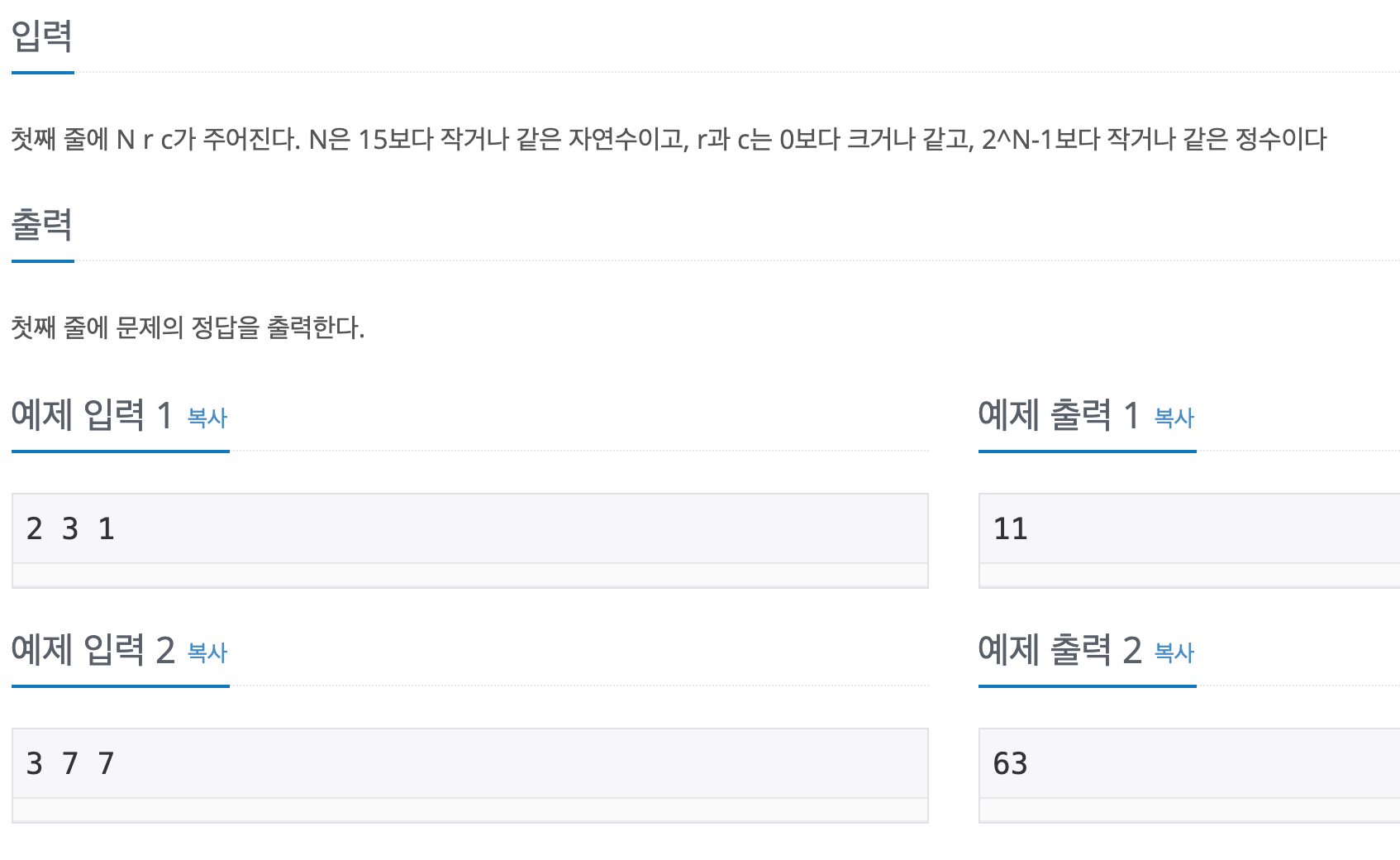 N이 주어졌을 때, (r, c)를 몇 번째로 방문하는지 출력하는 프로그램을 작성하시오.