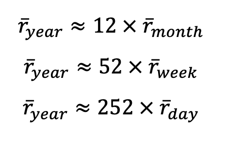 - each monthly return r_i 이는 같은 기댓값을 갖는다. 따라서