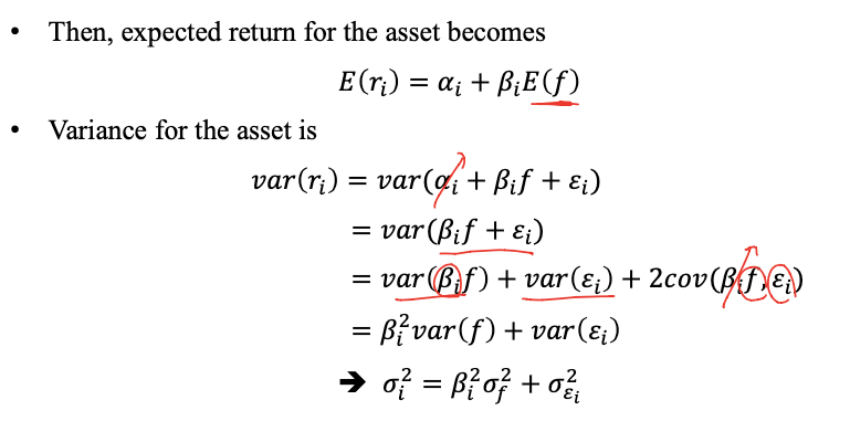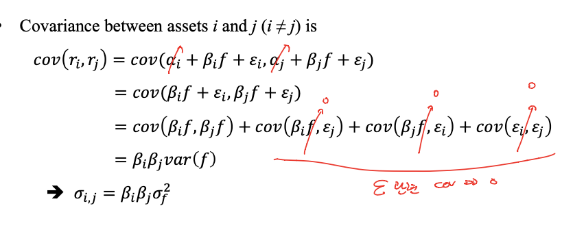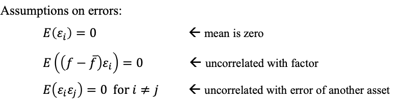 - expected return 구할 때 error의 평균은 0이라고 위에서 가정했으니까 날아감