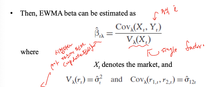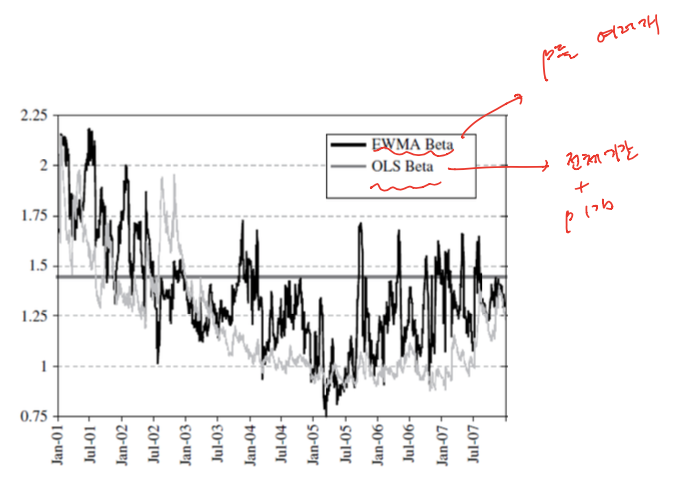 - 그래서 EWMA를 사용해서 베타를 구하면 아래오 같아짐
