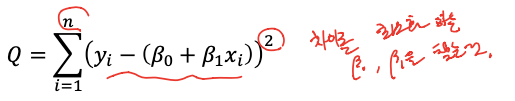 - 베타0, 베타 1을 찾아야 한다. 그러기 위해서 Q값을 minimize 한다.