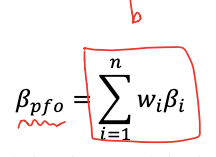 - 포트폴리오의 베타도 마찬가지로 weight를 곱해서 sum 한다.