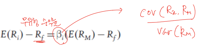 risk free asset 보다는 asset i 가 돈을 더 많이 벌어야 할 것 아니냐? 그래서 ri-rf가 중요함 -