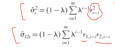 Setting 𝜆 = 0.95 corresponds to a half-life of about 25 days (상황에 따라서 최근 것에 더 높은 가중치를 주고 싶으면 더 낮은 람다를 넣어준다.)