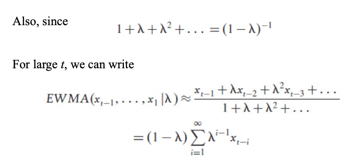 - 기간을 무한으로 해서 sum을 하니까 분모의 값을 앞으로 (1-람다)로 뺄 수 있음